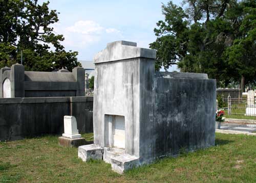 Celestino Gonzalez, ca.1796-1844, and Pauline Graupera Gonzalez, 1800-1896, are buried in a brick vault in St. Michael's Cemetery, Pensacola, Florida. The upper stone in the bottom picture has the gravestone inscription for Celestino and the lower stone has the inscription for Pauline. The vault is along the fence on the north side of the cemetery on Alcaniz St., south of the entry gate. The cemetery records transcription done by Lola Lee Daniell Bruington, indicates that Charles B. Gonzalez is buried in the vault also, although the inscriptions on the front of the vault do not show that.